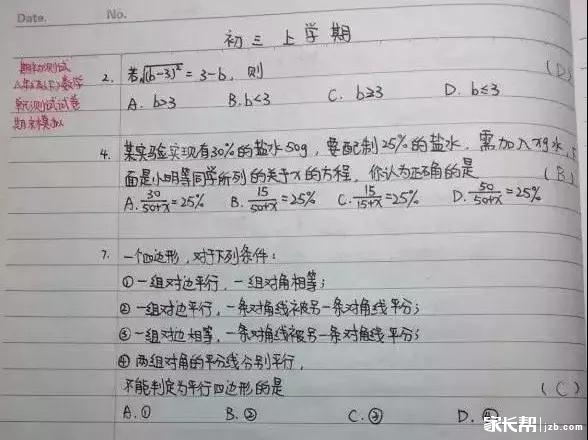 距离期中考试你也许还有准备的时间,这个时候不要慌乱、不要一味的做更多套题,把自己的错题弄透彻,基础保证不丢分,对待最后压轴题要有平和的心态!