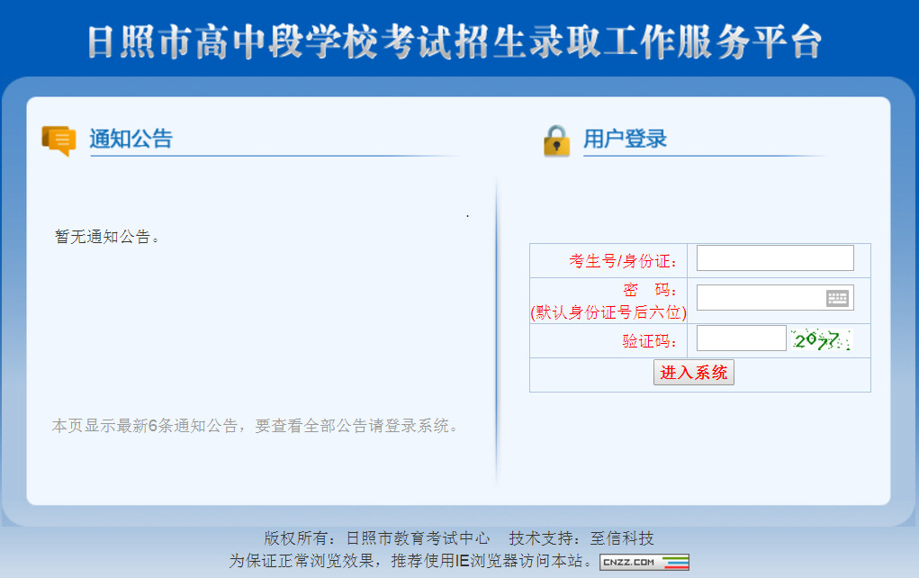 日照市教育高中段招生网络管理系统-考生登录http://jyks.rizhao.cn/student/