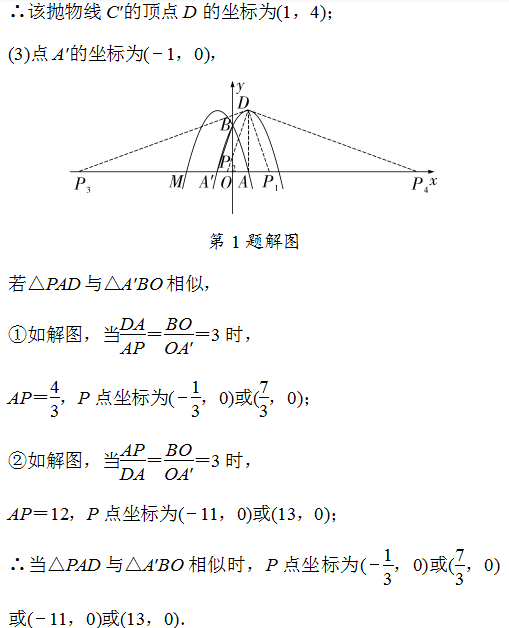 (3)若点A是点A关于原点的对称点,则在x轴上是否存在点P,使得△PAD与△ABO相似,若存在,求出符合条件的P点坐标;若不存在,请说明理由.