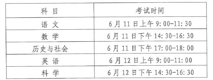 与往年相比,今年中考时间提前一天。具体时间安排如下:
