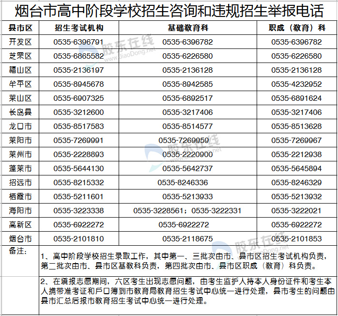 烟台二中继续面向市内六区招生,烟台牟平育英艺术中学的音美特长生面向六区招生,其他公办高中面向本县市区招生。民办高中学校依据规定自主确定招生范围。