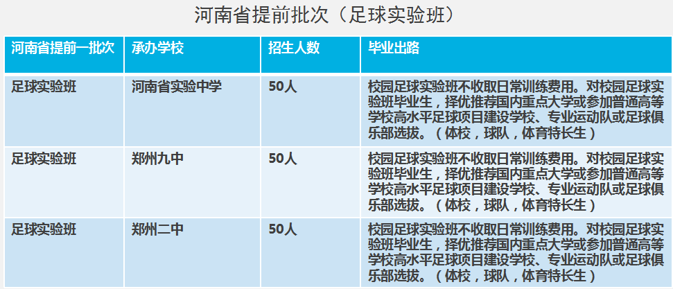 足球实验班是2017年刚开设的班型,河南省实验中学、郑州九中、郑州二中的足球实验班的足球成绩在全国都是比较突出的。