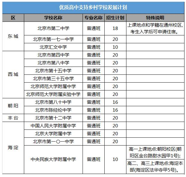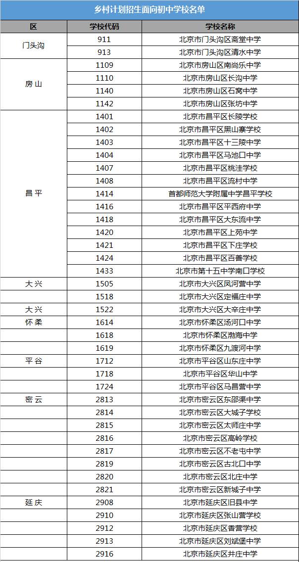 乡村计划包含在名额分配当中,跟区内名额分配、校额到校、市级统筹并列存在。是城区的一些优质学校拿出一部分招生名额面向大兴、房山、门头沟、昌平、平谷、怀柔、密云和延庆8个远郊区的孩子,是郊区孩子跨区报考城区中学的一个重要的升学途径。
