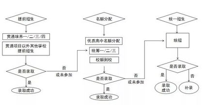 3)校额到校:是2016年中考新增加的一种录取方式,指针对2015年中招升入优质高中比例低于35%的一般公办初中,采用定向分配到校的方式补足优质高中录取名额到35%。