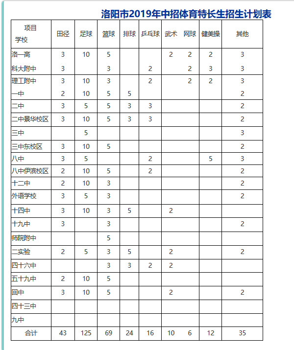 2019洛阳市中考体育特长生招生计划表公示_中考政策