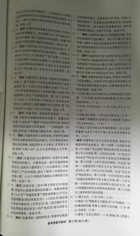 2016年镇江中考历史试题试卷及答案解析