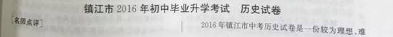 语文360网收集整理了2016年江苏省镇江市中考历史试卷试题及答案解析,供广大学生参考!