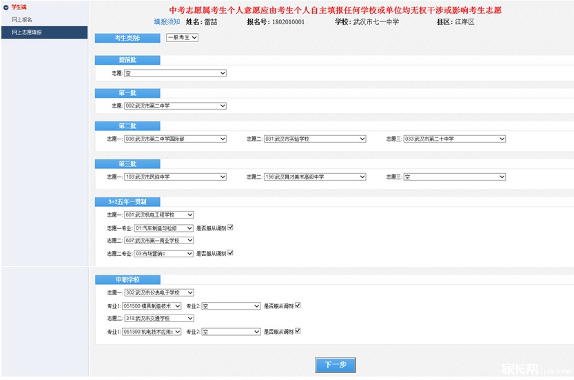 武汉市高中阶段学校招生考试网上填报志愿考生须知